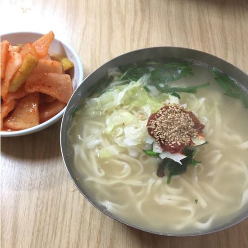 주문 후 반죽기로 뽑아서 면이 탱글탱글, 쫄깃하고 육수 또한 시원하고 깔끔해서 누구나가 좋아할 수 있는 음식입니다.