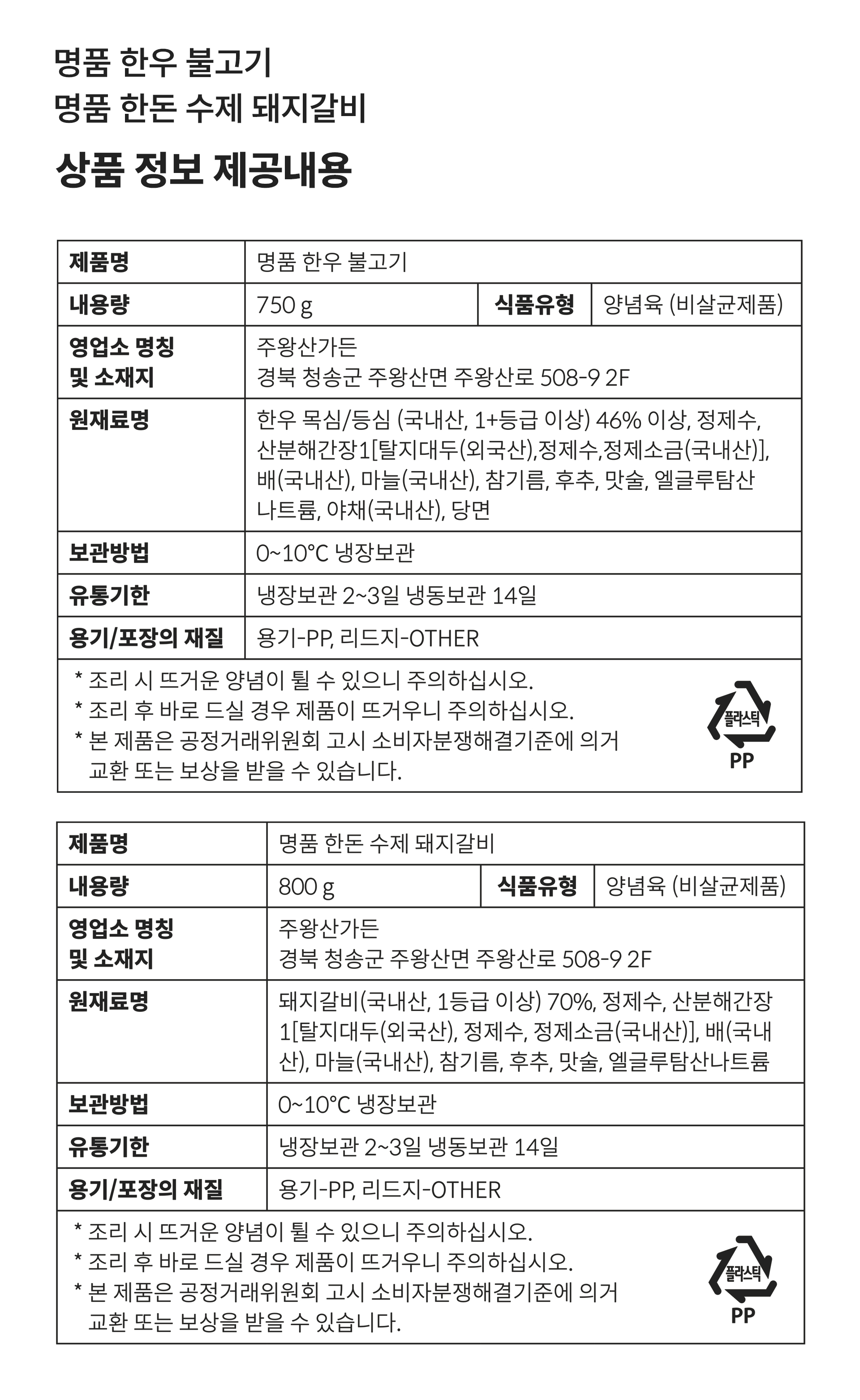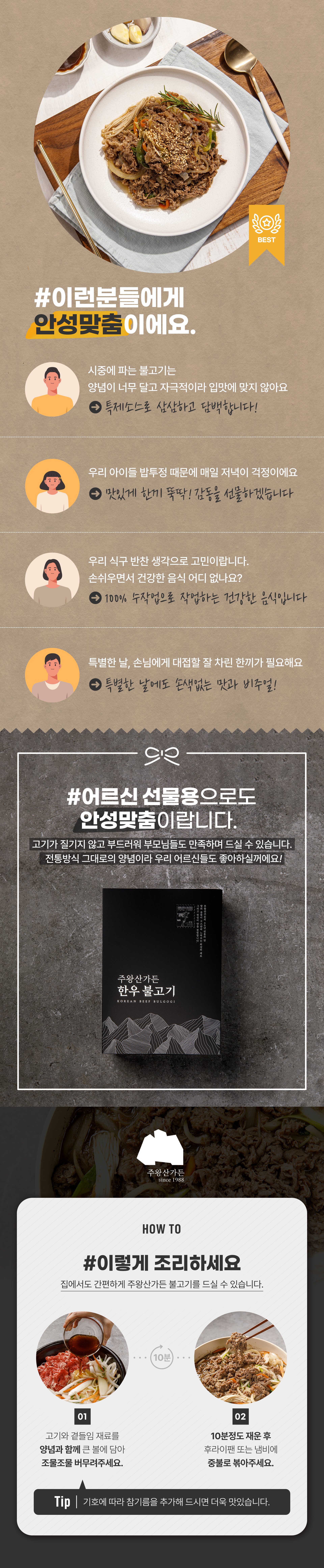 [주왕산가든] 명품 한우불고기 750g 불고기 육수 야채 포함