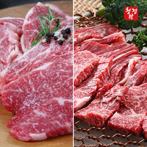 ★특가★ [청정촌] 1++등급 투뿔 한우모듬 400g (등심+갈비살) | 재고수량: 3,129개