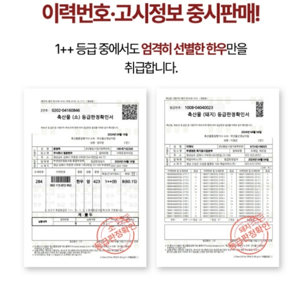원산지 : 국내산1++등급한우 외 한돈1등급