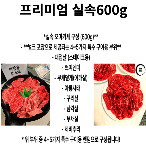 최저가 1++(7-9)등급 한우 600g 모듬구이 4종~5종 구이렌덤 배송