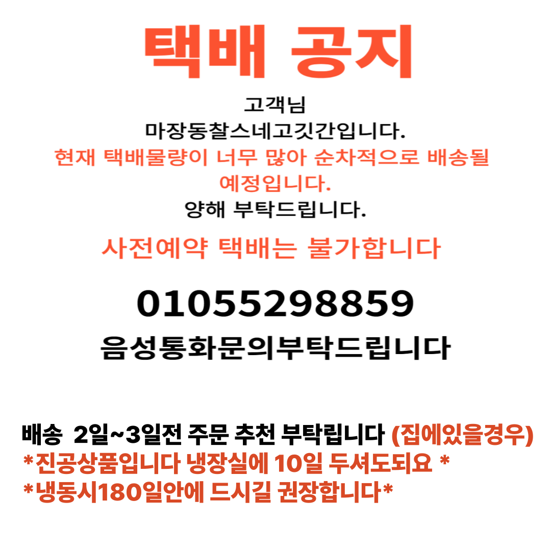 제조일로부터 진공포장소비기한15일 받는즉시냉장보관시0°도~-2°도 보관 냉동 보관시-18°보관 충분히가열하여 드세요